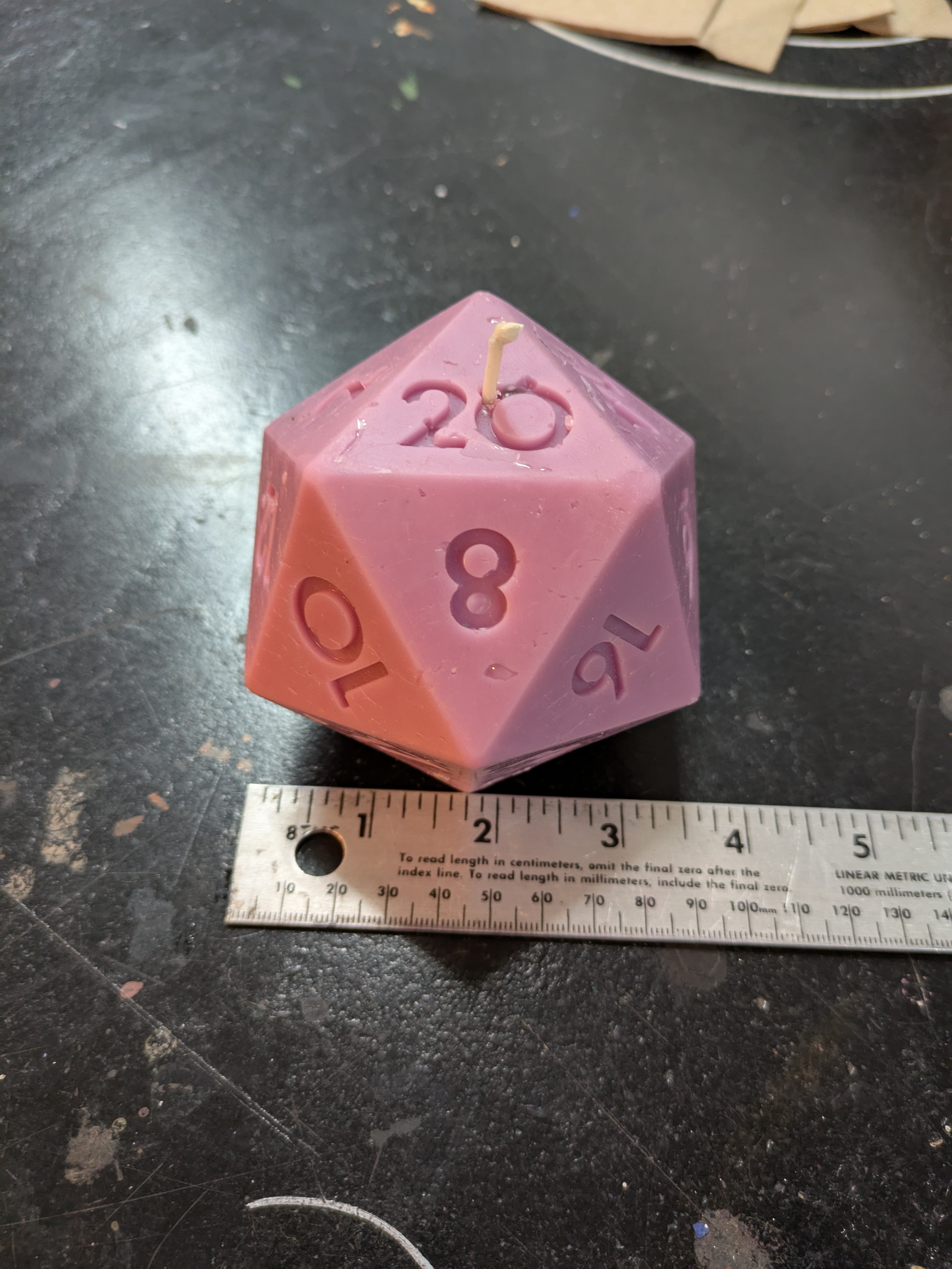 4″ 20 Sided Dice Candle. Many colors and scents available. Cost is $30 each.
