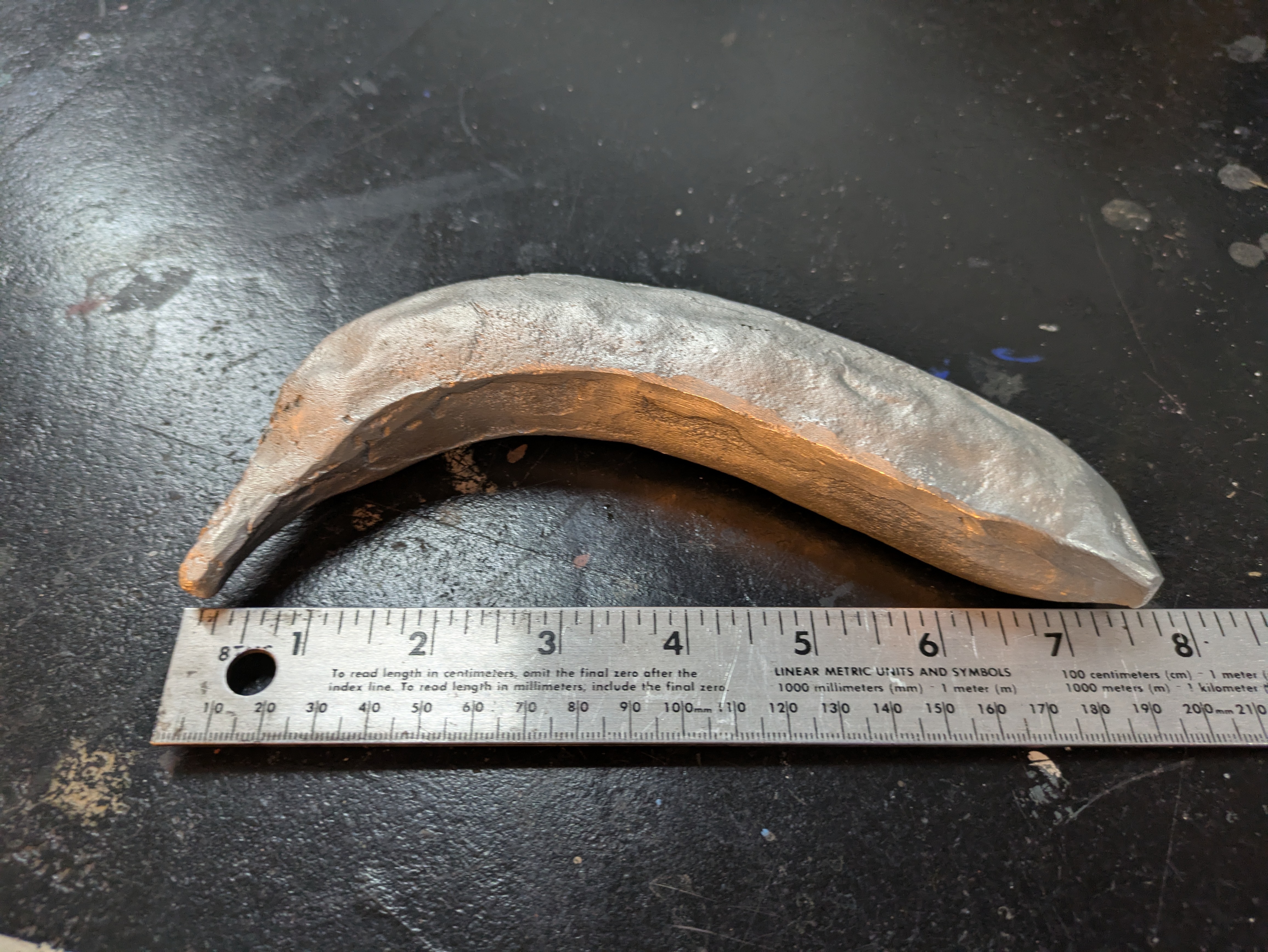 Solid Aluminum Bananas. Made from 100% aluminum cans. Weighs around 14oz and is almost 8″ long. Cost for these are $40 each.